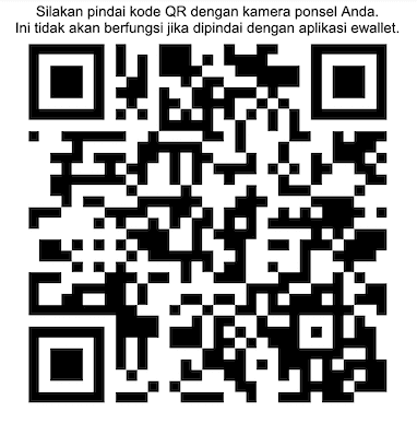 Mohon diperhatikan bahwa QR code hanya dapat dipindai menggunakan kamera handphone bukan pada aplikasi eWallet